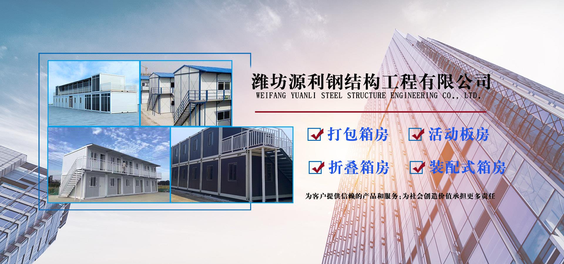 濰坊源利鋼結(jié)構(gòu)工程有限公司成立于2015年,是一家從事活動房屋,鋼結(jié)構(gòu)設計、制作、安裝為一體的公司。公司坐落于風景秀麗的藍寶石之鄉(xiāng)昌樂開發(fā)區(qū),占地約60畝,年加工生產(chǎn)能力到40萬平米,現(xiàn)已發(fā)展成本地較大的鋼結(jié)構(gòu)企業(yè),同時也已跨入集成房屋研發(fā)、推廣企業(yè)行列。公司配備了全套的箱房流水線生產(chǎn)設備,包含了全自動冷彎成型設備、流水自動涂裝線、沖壓型材生產(chǎn)線以及全套的配套設備,標準化、模具化生產(chǎn)加工,年生產(chǎn)5000套打包箱,產(chǎn)品保障。 公司主要產(chǎn)品有:鋼結(jié)構(gòu)工程加工、制作、安裝;各類活動板房、打包箱房、裝配式箱房、折疊箱房、圍擋、料棚、異型H型鋼、屋面板、墻面板、樓承板,C型鋼,Z型鋼;馬路隔離護欄等相關產(chǎn)品。